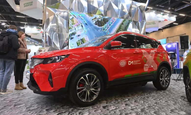 Один из образцов белорусского электрокара, построенного на базе автомобиля Geely Coolray, можно увидеть на выставке в новом экспоцентре Минска. Официально он называется Belgee EX50.