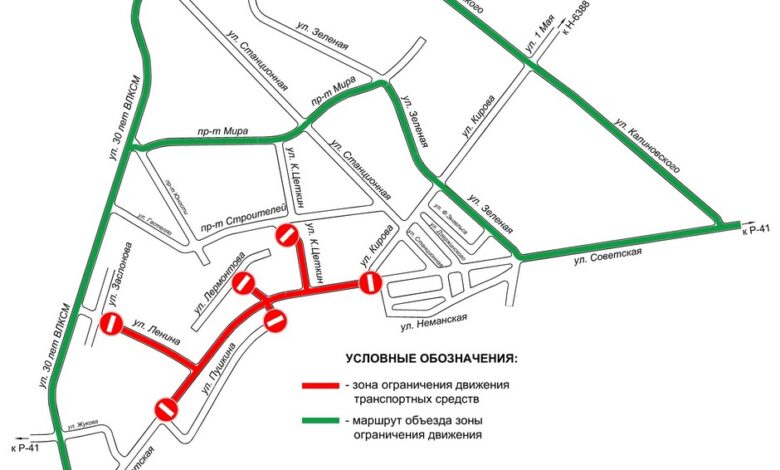 Объезд участков улиц, закрытых для движения транспортных средств, будет организован по улицам Калиновского, Зеленая, Вокзальная, 30 лет ВЛКСМ и проспекту Мира.