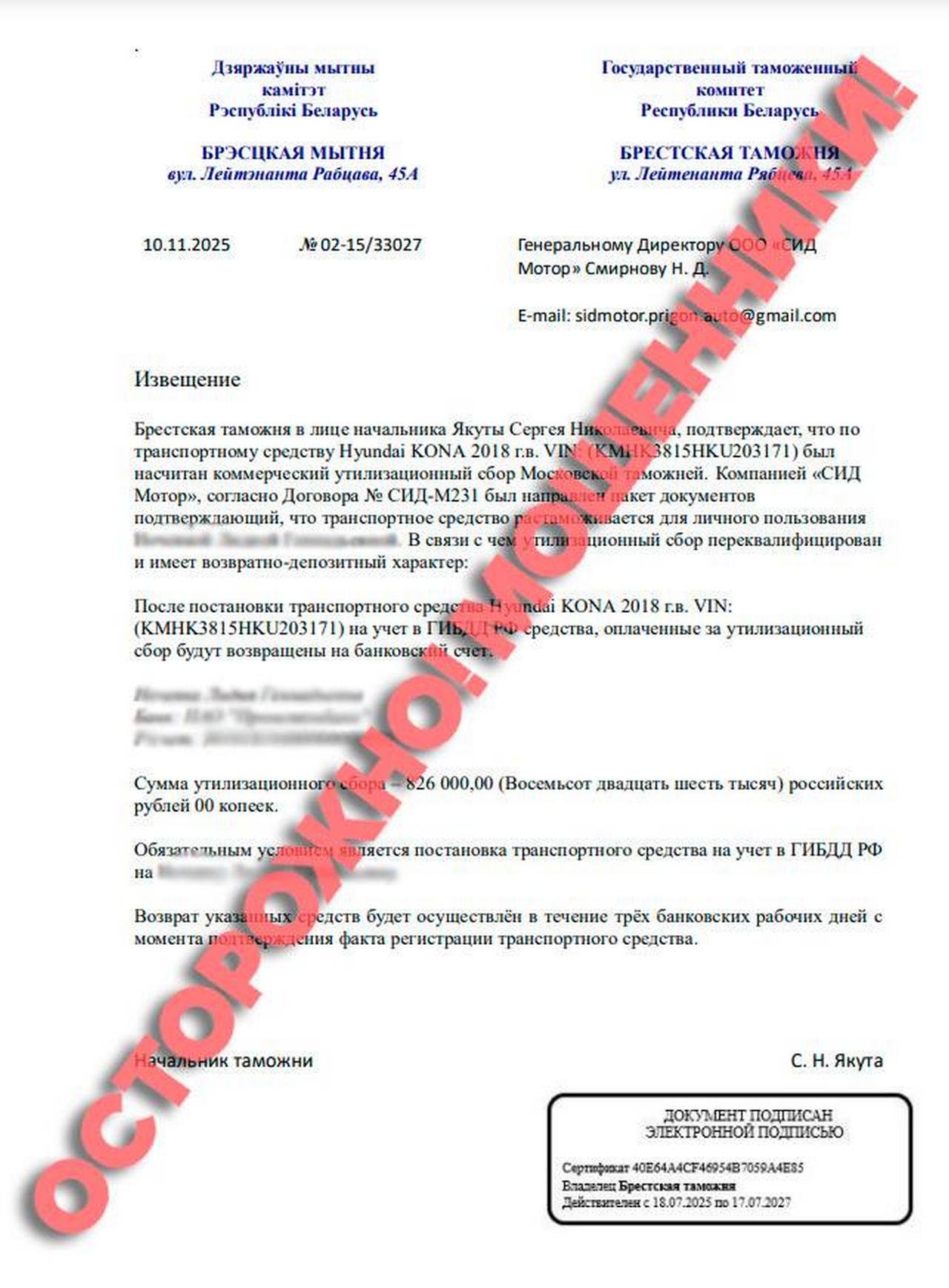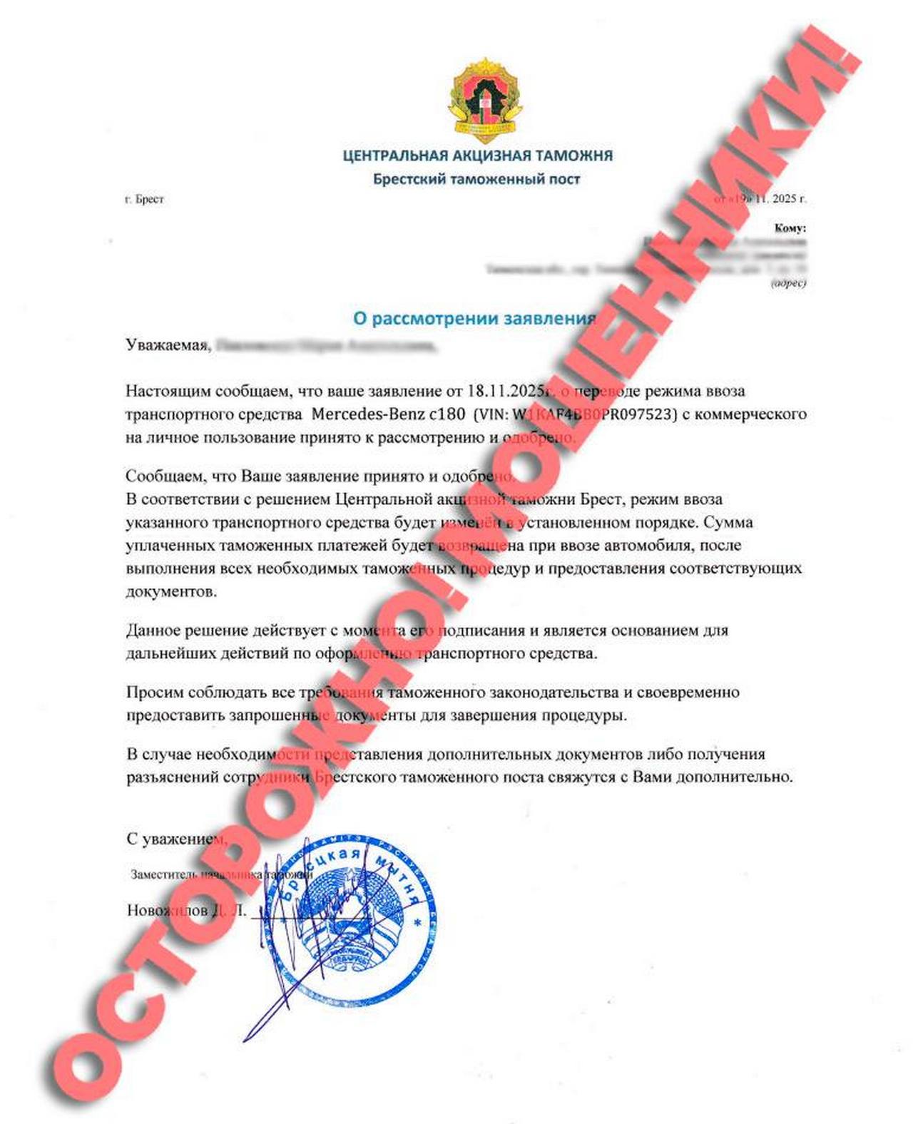 Таможенные органы Беларуси напоминают: будьте внимательны при выборе посредников. Проверяйте все документы, печати и реквизиты, особенно те, что касаются уплаты пошлин и сборов.