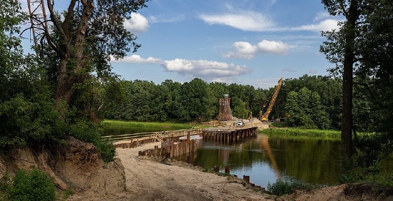 Помните легендарный подвесной мост в Мостах? Так вот, от него остались одни только воспоминания: внушительной по размерам конструкции словно никогда и не существовало. Но не пугайтесь — это временное явление. Дело в том, что сооружение решили реконструировать. Работы начались в мае. Мост разобрали, оставив только два пилона, на которых и держится вся установка. Через Неман проложили временный вариант для проезда техники.