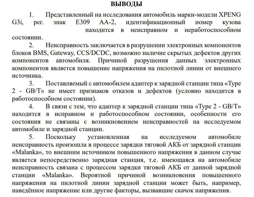 - поскольку установленная на исследуемом автомобиле неисправность произошла в процессе зарядки тяговой АКБ от зарядной станции Malanka, то внешним источником повышенного напряжения в данном случае является непосредственно зарядная станция, то есть имеющаяся на автомобиле неисправность связана с процессом зарядки тяговой АКБ от данной зарядной станции Malanka;