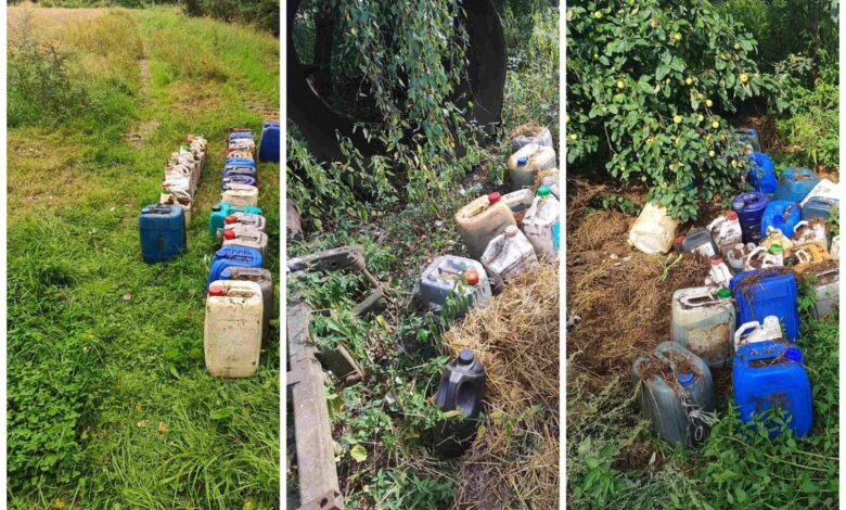 На днях в ходе рейдовых мероприятий сотрудники Вороновского РОВД выявили гражданина, причастного к краже топлива, у которого на приусадебном участке в кустах было обнаружено 36 канистр.