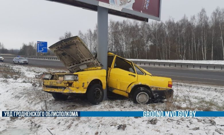 Сегодня в 11:30 на автодороге М-6 «Минск-Гродно», вблизи областного центра, 21-летний водитель автомобиля «Audi» двигался со стороны Минска. Подъезжая к Гродно, парень не справился с управлением, в результате чего совершил наезд на рекламный щит.