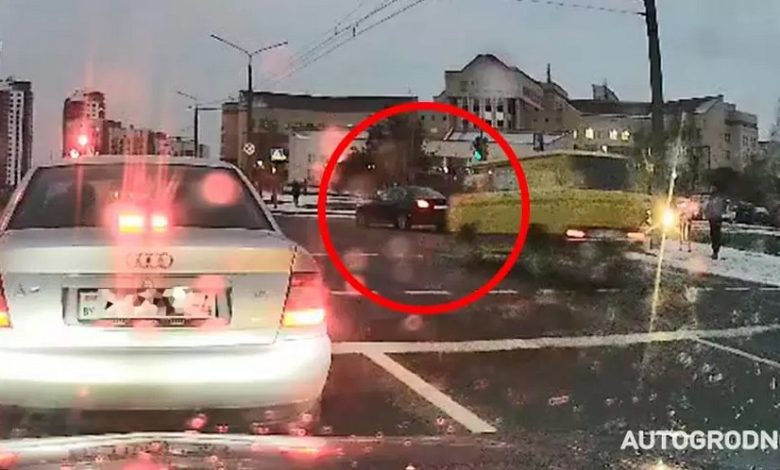 Один не смотрел в зеркало, второй — на светофор. Странное ДТП в Гродно попало на видео