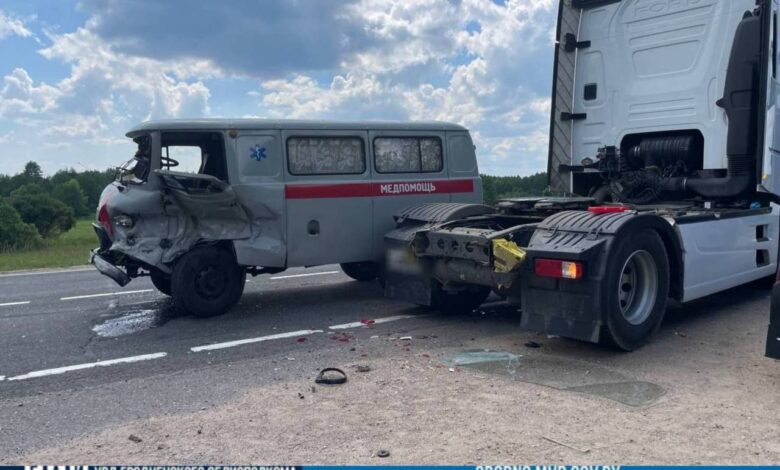 Под Новогрудком «буханка» скорой помощи влетела в остановившийся тягач. Водителя забрали в больницу