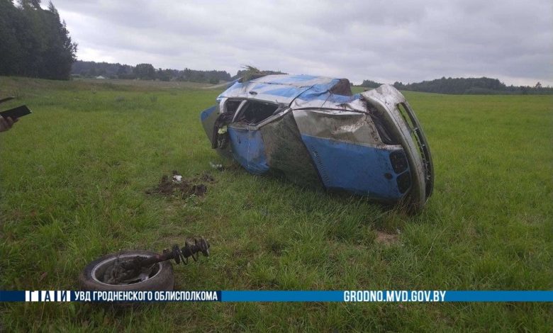 Остался без колес, стекол и фар. Под Ошмянами BMW съехал в кювет и несколько раз перевернулся