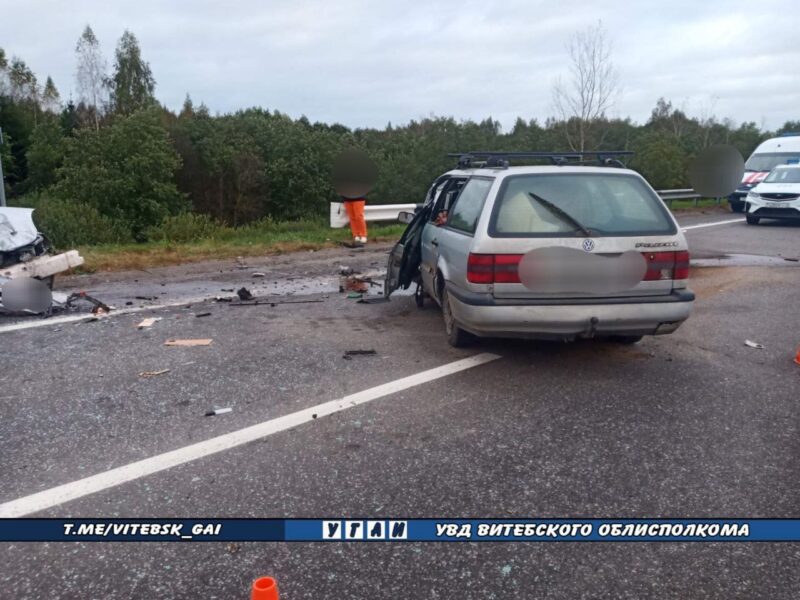 47-летний водитель автомобиля Volkswagen Passat, следуя в сторону Полоцка, выехал на встречную полосу, где столкнулся с Kia Rio, двигавшейся навстречу. В результате столкновения 87-летняя пассажирка Kia скончалась на месте от полученных травм. Оба водителя получили телесные повреждения и были госпитализированы.