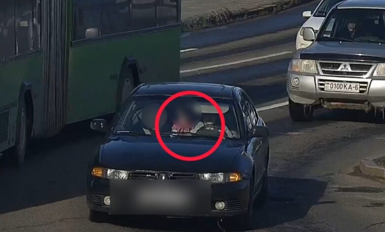 На днях на пересечении улицы Челюскинцев и проспекта Пушкинского в Могилеве в объектив камер видеонаблюдения попало, как водитель автомобиля Mitsubishi перевозит маленького пассажира с нарушением требований Правил дорожного движения, рассказывает журналист abw.by Марина Ажгирей.