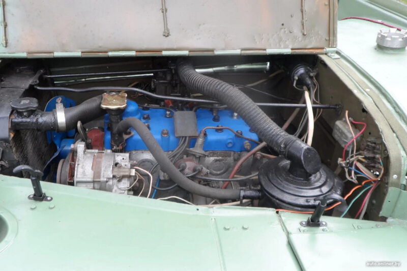 Главное изменение — под капотом теперь стоит двигатель от более позднего ГАЗ-69. Как пояснил хозяин автомобиля, с оригинальным мотором возникли проблемы: он рассчитан на старое низкооктановое топливо, машина сильно перегревалась. Целью было сделать так, чтобы на раритете можно было спокойно ездить по современным дорогам.