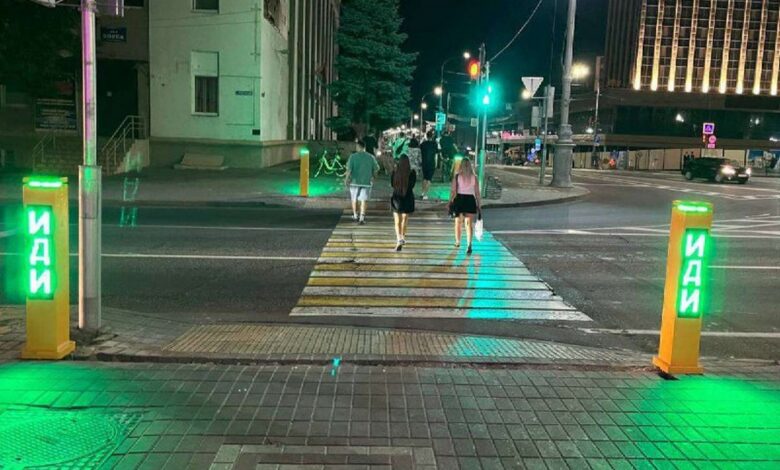 На столбиках используются голосовые и экранные индикаторы, которые напоминают пешеходам о том, что нельзя переходить дорогу на красный свет.