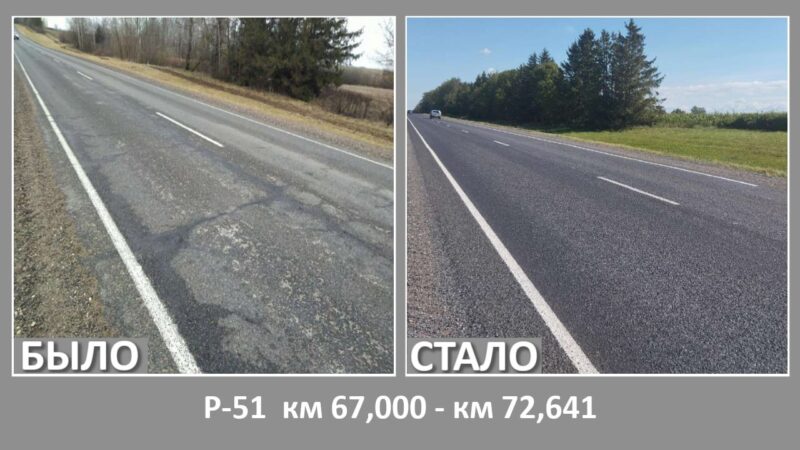 Работы выполнены РУП «Гродноавтодор» и охватили ключевые направления, включая трассы М-11/Е85, Р-11, Р-50, Р-51, Р-78 и Р-95. Обновление покрытия затронуло как магистральные, так и региональные участки, способствуя повышению безопасности и комфорта дорожного движения.