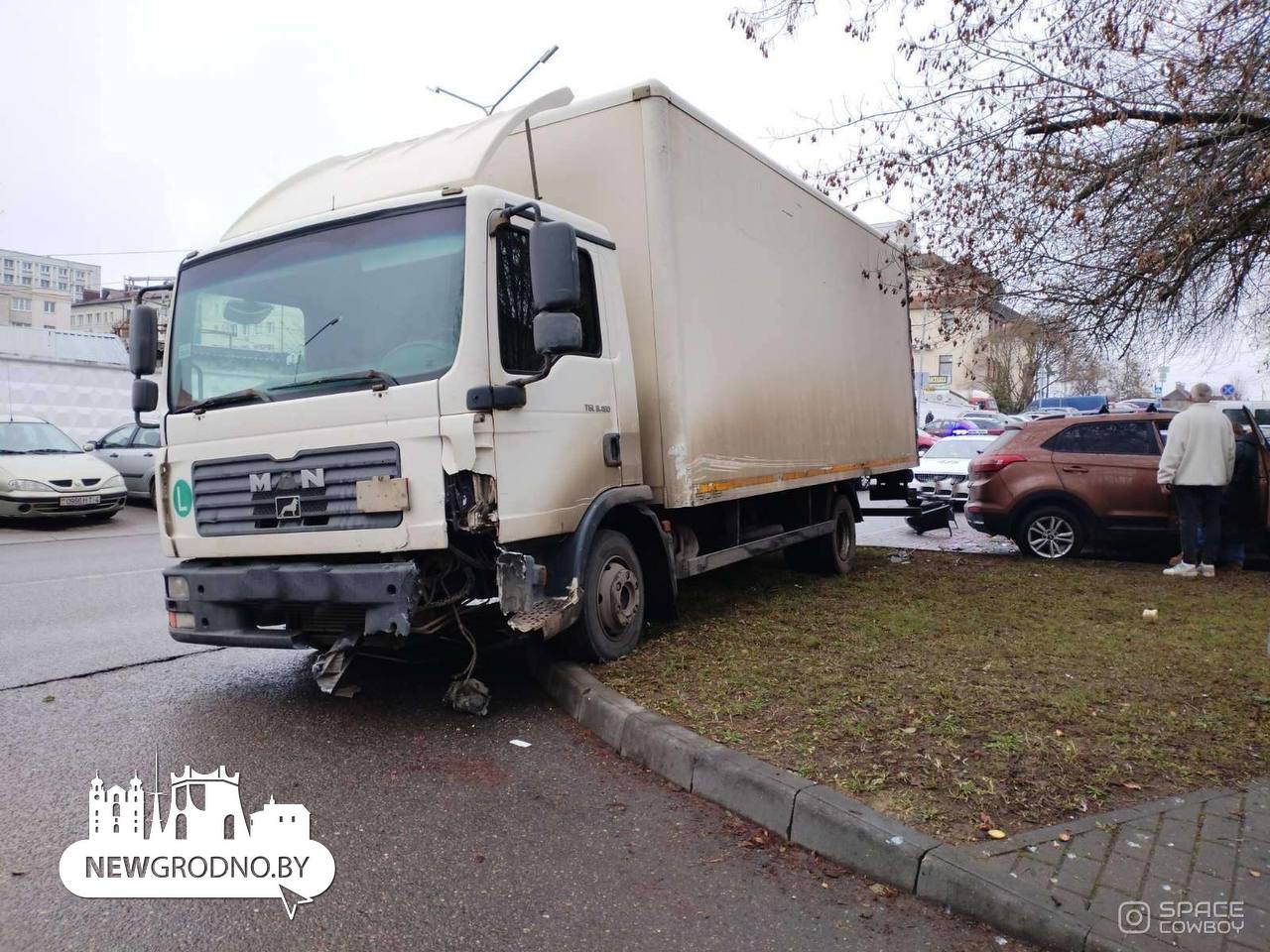 «Забыл про ручник?»: в Гродно грузовик протаранил 4 машины