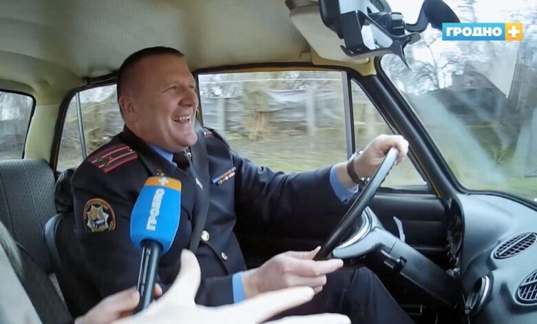 Как сообщает Телеканал «Гродно Плюс», Начальник Управления ГАИ Гродненского облисполкома Геннадий Белявский на пресс-конференцию в Новый замок отправился на патрульном ретро-автомобиле.