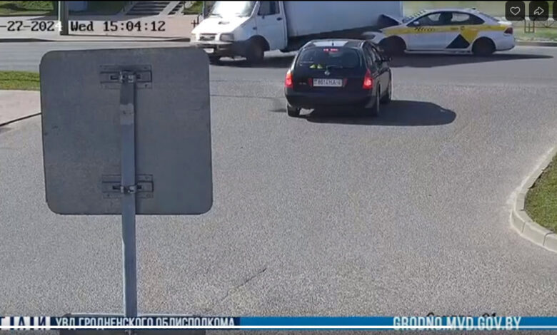 В Гродно такси на полном ходу влетело в грузовик. Пассажира спас ремень (видео столкновения)