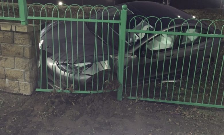 Занесло? В Гродно Tesla улетела с дороги и врезалась в забор АЗС