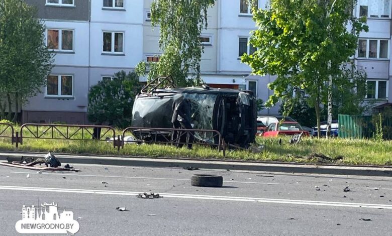 Снес забор и лег на бок за пределами дороги: в спальном районе Гродно утром устроили серьезную аварию