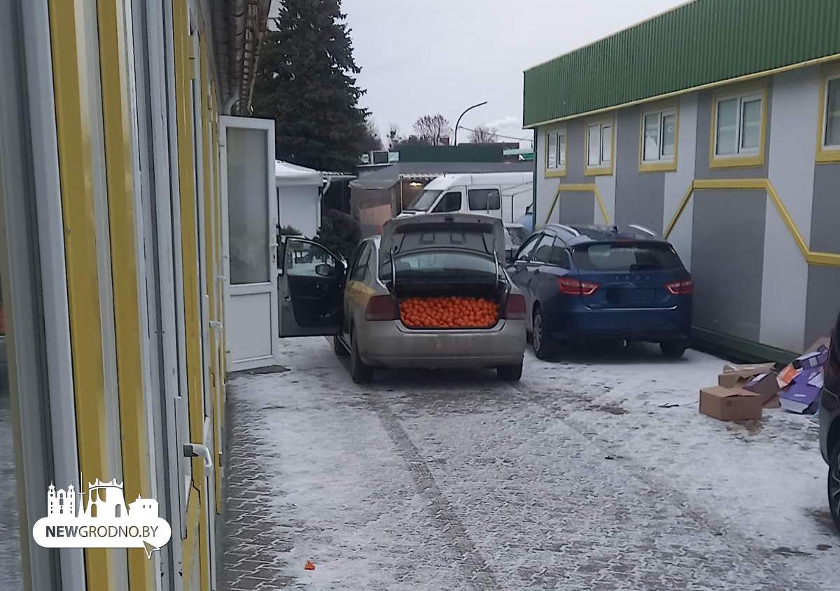 Вот это новогодний размах: в Гродно заметили такси с полным багажником мандаринов