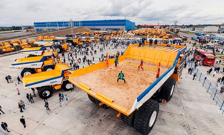 В рамках празднования Дня машиностроителя Белорусская и Всероссийская федерации волейбола провели показательный матч на уникальной площадке — кузове крупнейшего самосвала…