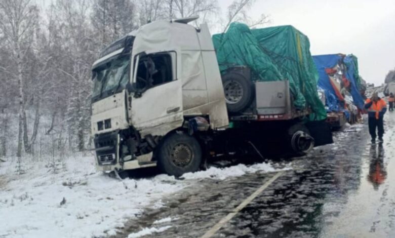 В сети появилось видео с места аварии на трассе «Сибирь», где столкнулись грузовики. В результате трагедии погибли три человека, ещё…