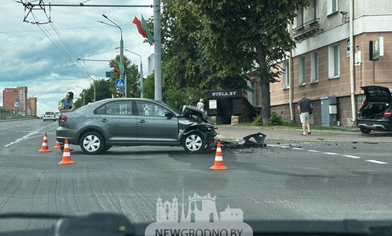 Серьезная авария на пересечении улиц Горького и Островского в Гродно. У гостиницы «Беларусь» днём во вторник столкнулись две легковушки. От…