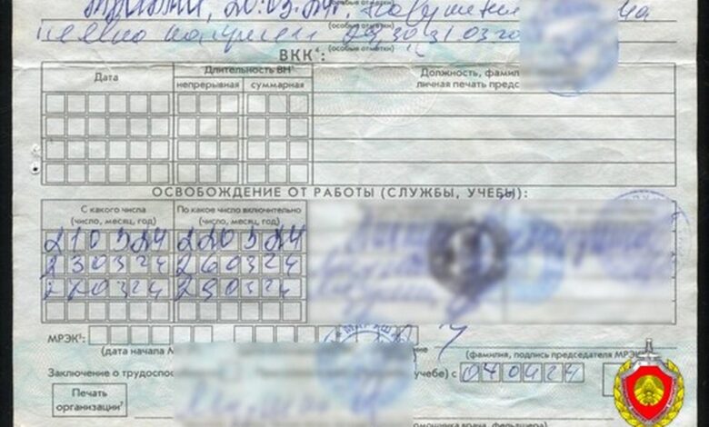 Сотрудниками милиции листок нетрудоспособности изъят и направлен в Гомельский межрайонный отдел Государственного комитета судебных экспертиз для проведения судебной технической экспертизы документов.
