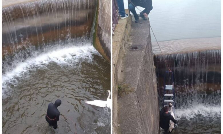 Доброта дня: в Лиде спасли лебедя, оказавшегося в западне