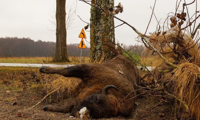 Польские СМИ пишут, что зубр погиб в субботу (7 декабря) на поветовой дороге Наревка-Ольхувка — в Беловежской пуще.