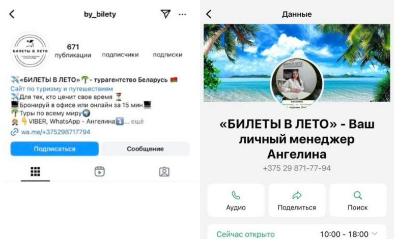 Правоохранителям, потерпевшая пояснила, что в Instagram увидела рекламу аккаунта «by_bilety», который предлагал путевку в Дубай на 4-х за 10300 белорусских рублей. Стоимость была привлекательной, и девушка решила написать как она думала оператору. Собеседница предложила продолжить общение в WhatsАpp по номеру +375298717794, рассказали в пресс-службе УВД Гродно.