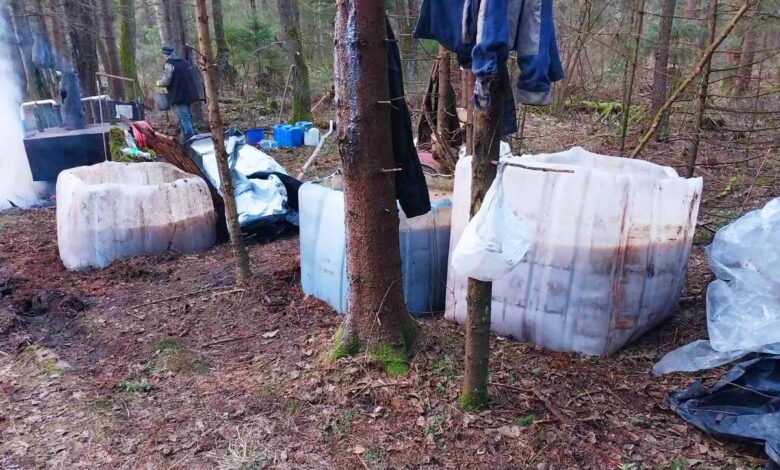 2500 литров браги и 65 литров самогона. Милиция «накрыла» в лесу под Щучином самогонный мини-завод