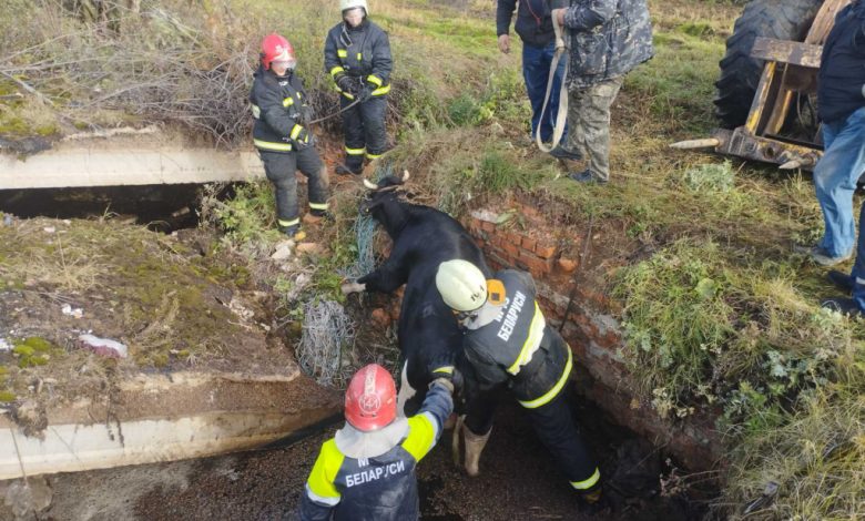 — Прибывшие спасатели обнаружили, что в подвал глубиной 2,5 метра упала корова, — рассказала официальный представитель Могилевского областного управления МЧС Инесса Елфимова. — Как пояснил хозяин, ночью животное осталось без присмотра и упало в погреб, где частично не было перекрытия. Чтобы вытащить корову, работникам МЧС пришлось разбирать железобетонную конструкцию. Животное не пострадало.