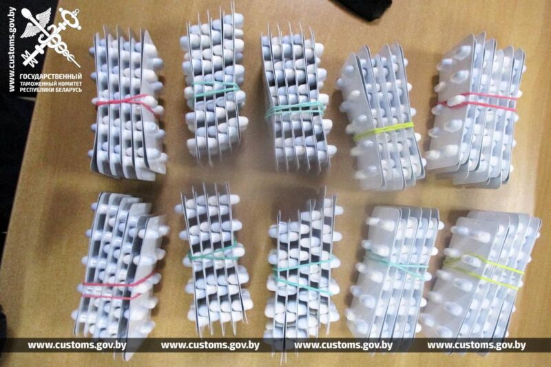 Техническое средство контроля сработало на женщин, и таможенники предложили им предъявить скрытые предметы. Выяснилось, что гражданки Беларуси спрятали по тысяче капсул препарата, обмотав их вокруг тела в чулках и прикрыв верхней одеждой.