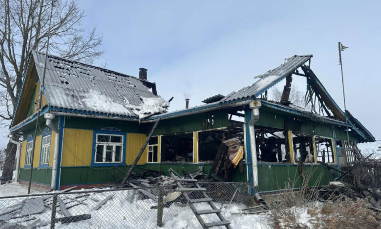 9 февраля в 13-29 в деревне Курпеши Дятловского района горел жилой дом.