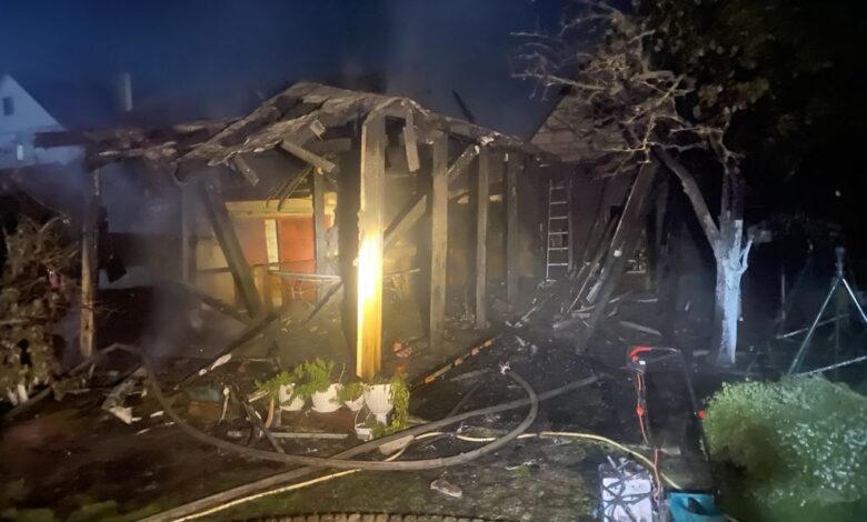 Около получаса потребовалось спасателям, чтобы ликвидировать пожар. Огнем уничтожена кровля, повреждены стены, имущество в хозяйственной постройке, а также уничтожена рядом расположенная деревянная беседка.