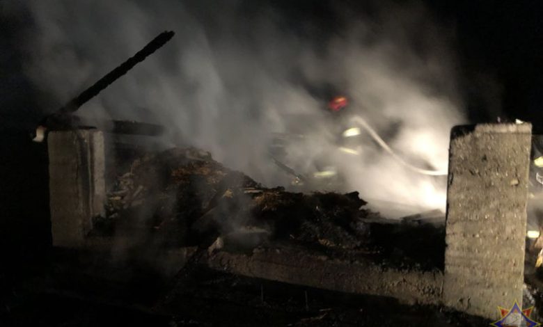 Кровля обрушилась внутрь — под Гродно ночью загорелась хозпостройка