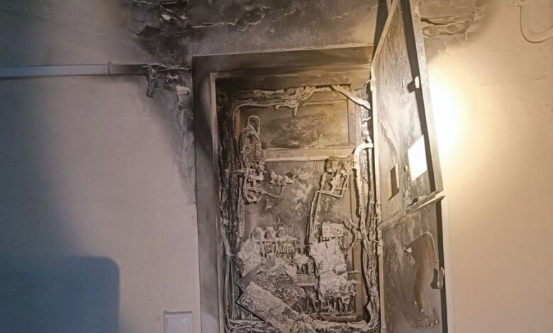 Прибывшие на место спасатели МЧС выяснили, что источник задымления — возгорание в электрощитовой на лестничной клетке.