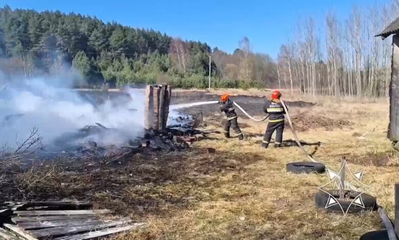 Сгорели нежилой дом и две хозпостройки — серьезный пожар под Слонимом (Видео)