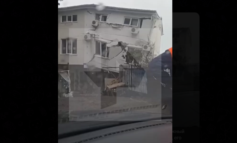 В микрорайоне Лоо Лазаревского района Сочи трехэтажный дом обрушился в результате шторма. Момент обрушения здания сняли на видео, его публикует Telegram-канал Shot.