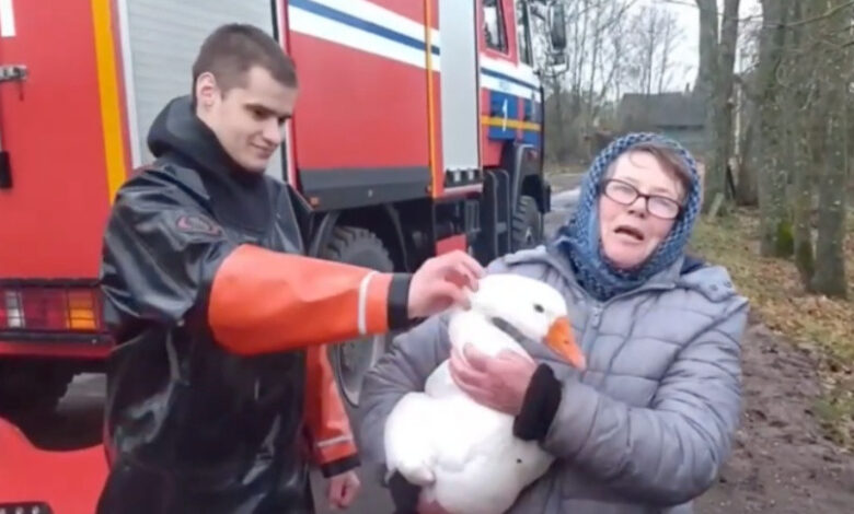 В Беларуси гусь вмерз в лед — его хозяйка перепугалась и вызвала спасателей (Видео)