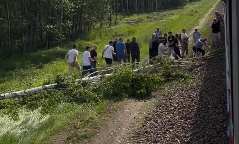 «Настоящие мужики»: в Беларуси пассажиры поезда помогли убрать упавшее на рельсы дерево