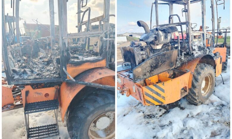 Утром того же дня, в 9:47, в поле загорелся погрузчик. Огонь уничтожил кабину и повредил моторный отсек. Люди не пострадали. Предварительная причина — короткое замыкание электропроводки.