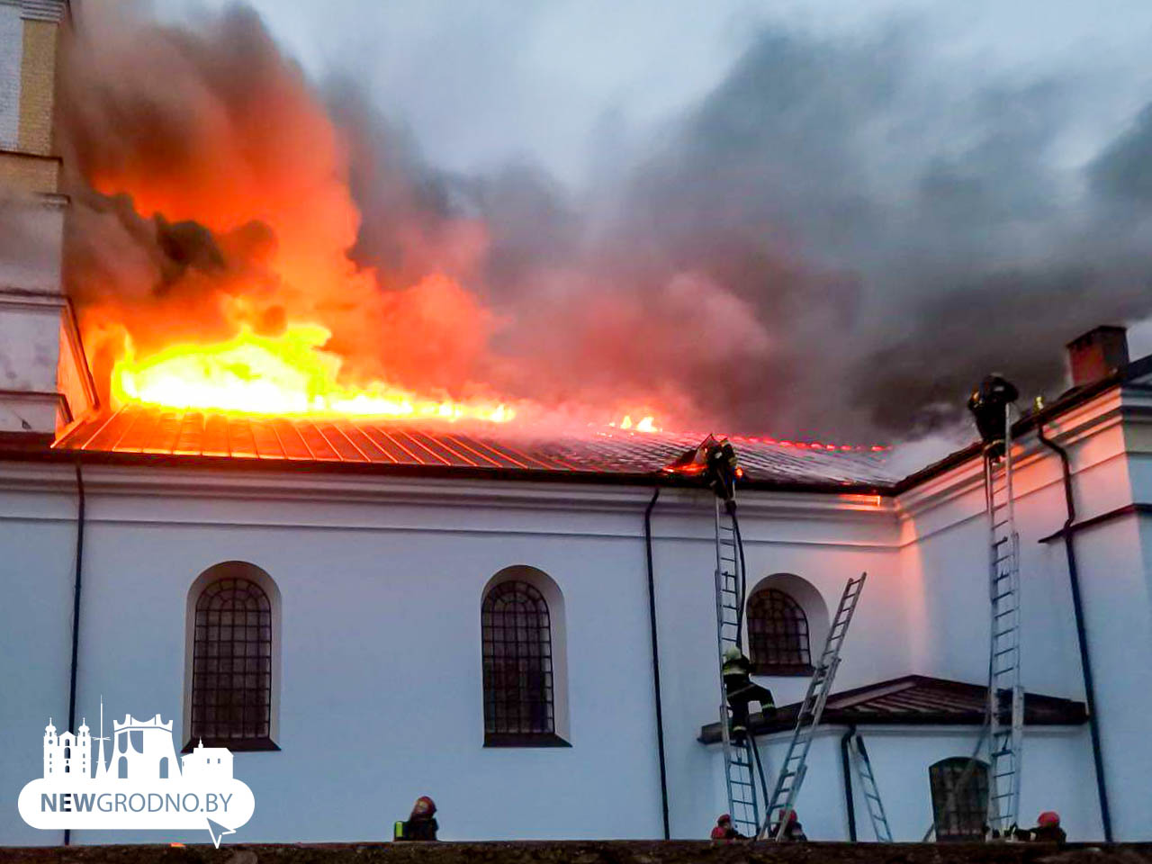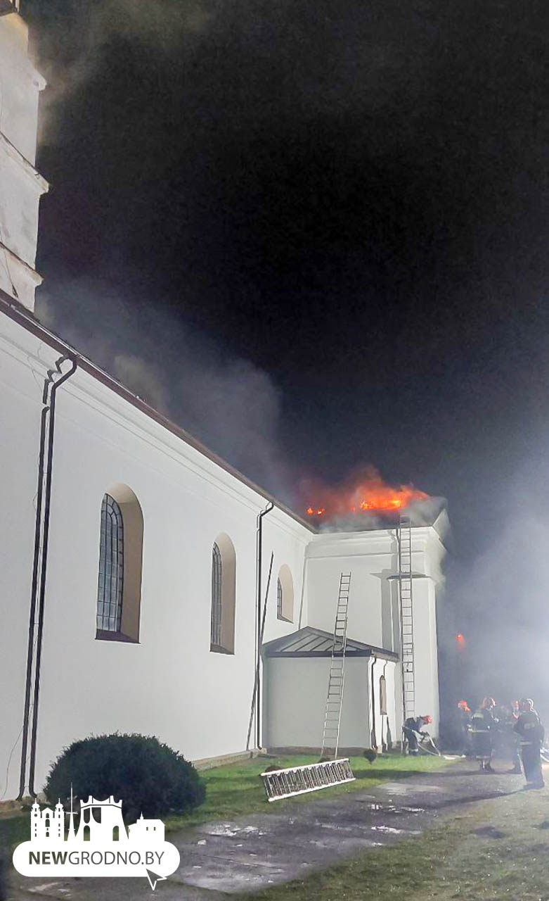 В Гродненской районе горит костел в агрогородке Сопоцкино