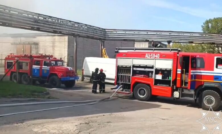 В Гродно горел склад на одном из предприятий (Видео)