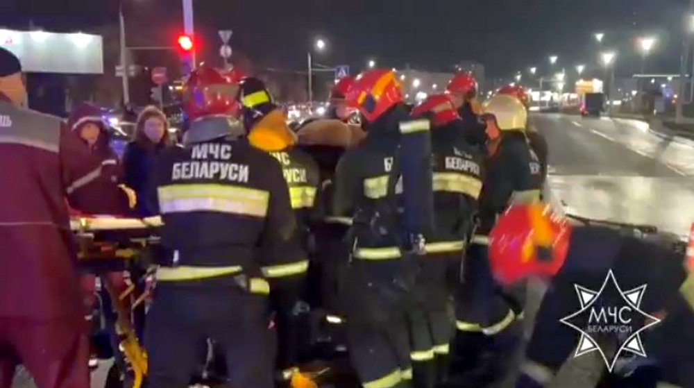 В Гродно после аварии пассажирку буквально вырезали из разбитой машины (видео)