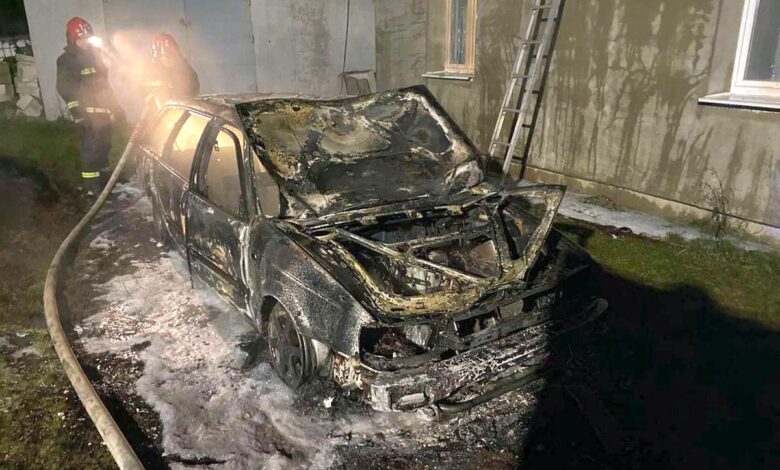 В 02-19 гродненские спасатели выехали на улицу Волкова, где около частного жилого дома горел легковой автомобиль «Фольксваген».