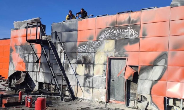 В считанные минуты спасатели ликвидировали пожар. Огнем поврежден утеплитель и наружная отделка стен. Эвакуация посетителей центра не потребовалась. Задымления внутри здания не было.
