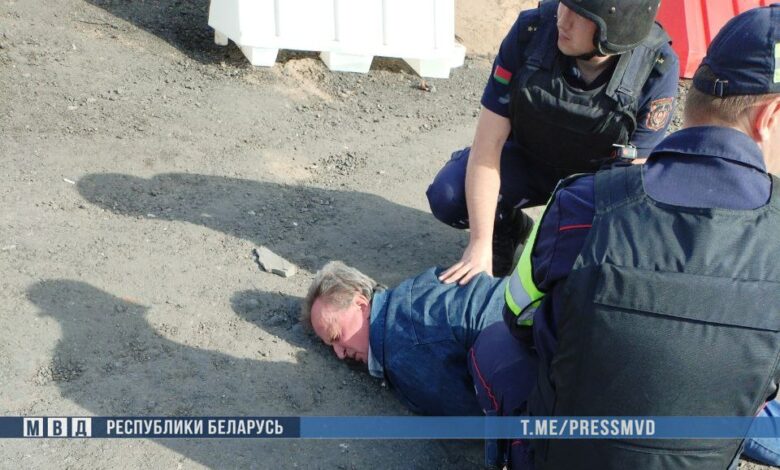 Могилевчанин задержан. При нем также обнаружен еще один нож и пистолет. Сотруднику оказывается необходимая медицинская помощь.