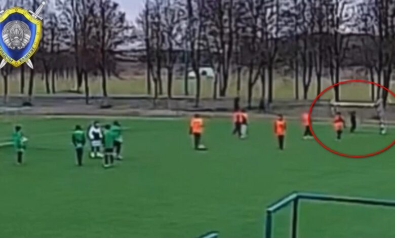 Повис на перекладине. В Ошмянах на ребенка упали футбольные ворота (Видео)