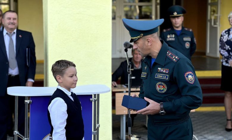 В средней школе №8 Слонима прошла торжественная линейка, на которой подарок от министра по чрезвычайным ситуациям вручили учащемуся 4 класса Евгению Коту, рассказали в пресс-службе МЧС Гродно.