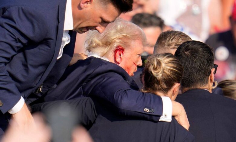 Трампа, у которого было окровавлено ухо, охрана увела со сцены.
