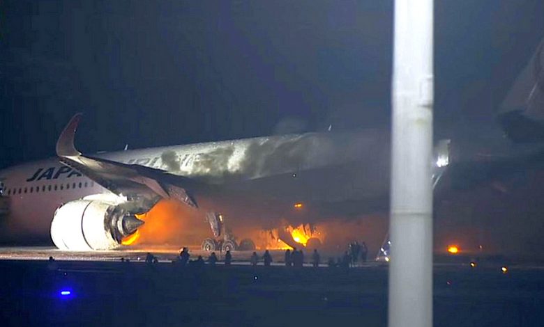 В Японии загорелся самолёт с 367 пассажирами